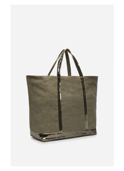 Sac cabas taille XL en lin et à paillettes.