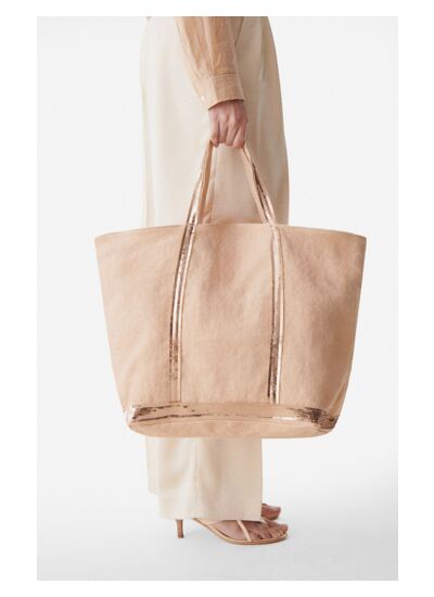 Un week-end improvisé, une journée très chargée ou tout simplement l'amour des volumes généreux... Confectionné en lin, le Cabas XL reprend la ligne rehaussée de paillettes de l'iconique accessoire lancé par Vanessa Bruno en 1998. Bénéficiant de la certification BelgianLinenTM, ce modèle versatile et pratique accueille un ordinateur portable, une paire de chaussures de rechange ainsi que vos essentiels pour une escapade surprise.