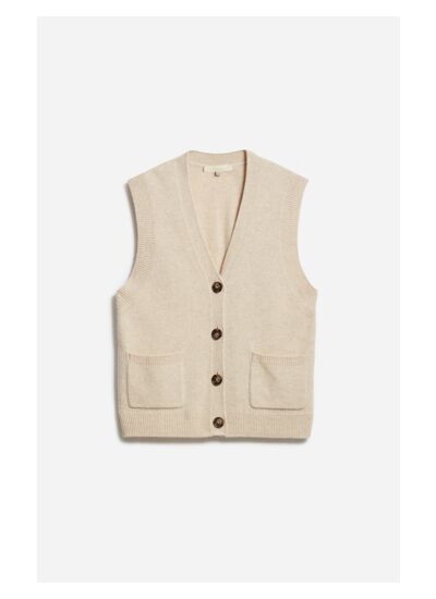 Dashley, le cardigan sans manches est confectionné en laine et yack. Avec son col V et sa fermeture boutonnée, il se porte aussi bien superposé que tout seul. Aussi casual que chic, on le porte aussi bien avec un jean qu',avec un pantalon tailleur.