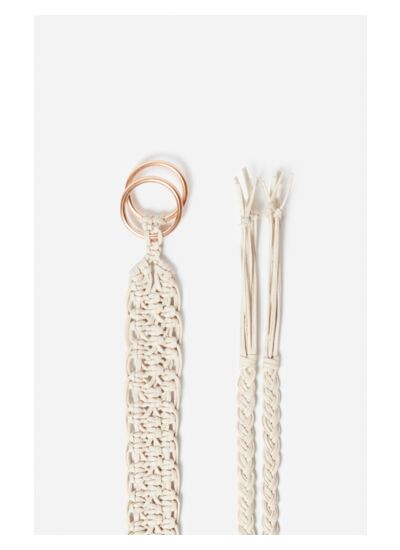 Cette ceinture en cuir tressé macramé de 45 mm allie élégance et modernité. La technique du macramé est un artisanat ancien qui consiste à nouer des fils ou de la corde à la main. Les artisans créent des motifs complexes et des textures décoratives en faisant des noeuds soigneusement planifiés. Cette technique demande patience, précision et créativité, chaque noeud contribuant à la beauté et à l'unicité de la pièce finale. Son cuir au tressage artisanal est sublimé par une double boucle dorée. Idéale pour structurer robes, pantalons ou jupes, elle apporte une touche raffinée et contemporaine à vos tenues.