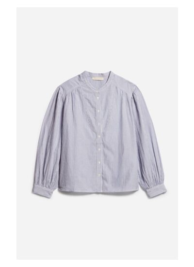 La chemise féminine avec ses fronces dans le dos et son plastron sur le devant et son col Mao qui joue des codes du tailoring masculin. Confectionnée dans un coton bleu léger, c',est la chemise qui sublimera vos tenues du quotidien.