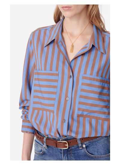 La chemise Dann réinvente la chemise masculine classique dans une coupe plus ample et fluide, avec un jeu de rayures. Confectionnée en viscose légère et fluide, sa légèreté ajoute à sa coupe un aspect fluide naturel. Portez-la avec un simple jean pour une tenue décontractée ou avec un pantalon de tailleur pour une tenue de bureau qui a du caractère.