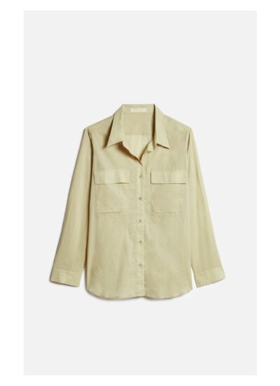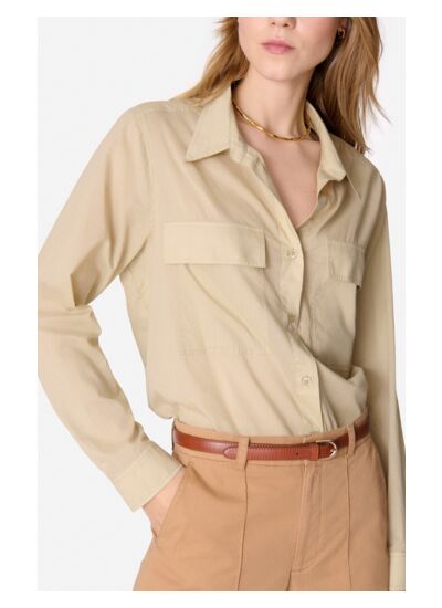 La nouvelle chemise préférée de Vanessa. Pièce essentielle du vestiaire féminin, la chemise Dim est confectionnée en 100% coton. Avec son allure masculine à l'esprit workwear, elle se distingue par ses poches plaquées à rabat au niveau de la poitrine. Sa coupe fluide offre une silhouette à la sophistiquée et minimaliste. Son col chemise, au boutonnage décalé, se porte volontairement ouverte pour une attitude nonchalante et moderne. Embrassez l'allure chic et décontractée en la portant légèrement surtaillée, de jour comme de nuit avec votre jean préféré.