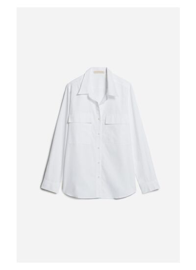 La nouvelle chemise préférée de Vanessa. Pièce essentielle du vestiaire féminin, la chemise Dim est confectionnées dans un voile de coton blanc. Avec son allure masculine à l'esprit workwear, elle se distingue par ses poches plaquées au niveau de la poitrine. Sa coupe fluide offre une silhouette à la sophistiquée et minimaliste. Son col chemise, au boutonnage décalé, se porte volontairement ouverte pour une attitude nonchalante et moderne. Embrassez l'allure chic et décontractée en la portant légèrement surtaillée, de jour comme de nuit avec votre jean préféré.