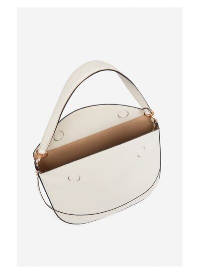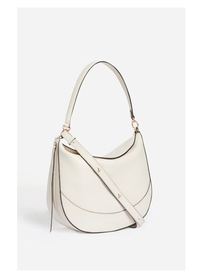 Sac demi-lune en cuir lisse. Porté main, épaule ou crossbody.