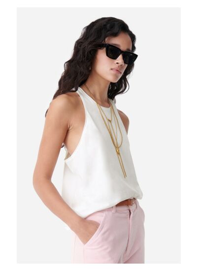 Le débardeur versatile aux emmanchures larges et au dos nageur. C'est la pièce essentielle à avoir dans vos garde-robes à porter telle quelle ou sous une chemise ouverte. Cool et chic à la fois, cette pièce est rehaussée d'initiales "VB".