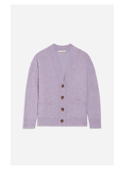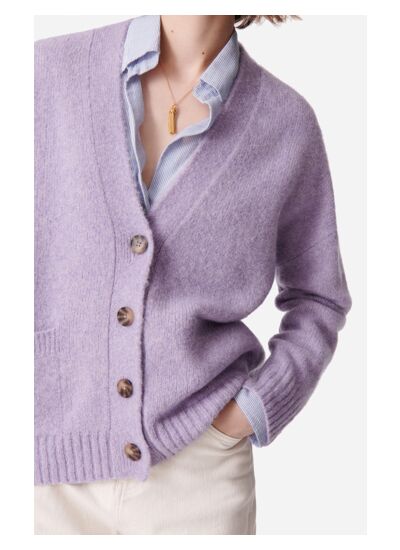 Le gilet Bagatelle vous enveloppera de douceur et de confort pour les journées les plus fraîches. Confectionné en laine, alpaga et yack, ce modèle boutonné tombe fluidement sur votre silhouette avec une encolure en V, des manches extra longues et une coupe oversized pour une silhouette ample et spacieuse, idéale pour un look décontracté. Il garantit une sensation de confort où que vous soyez, que ce soit pour un brunch entre amies ou une soirée canapé devant la télé. Décliné dans un lila doux, ce cardigan égayera vos journées avec une touche romantique.