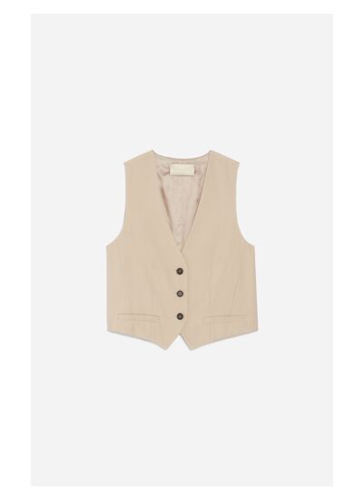 Veste sans manches en viscose mélangée beige