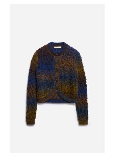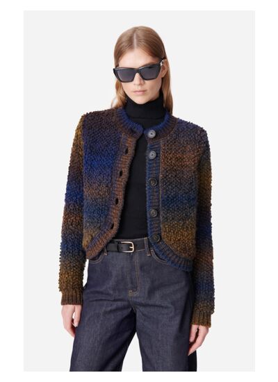Le gilet court Drissa en laine mélangée réinvente le gilet tricoté classique dans une version contemporaine. Ce modèle multicolore se décline en tons chauds, ajoutant une touche chaleureuse et naturelle à votre garde-robe. Sa texture légèrement teddy, grâce à son tricot en maille bouclée, apporte à la fois charme et confort.