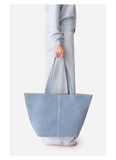 Ce nouveau Cabas en cuir, reprend l',esprit de notre sac Daily, avec un cuir de vachette lisse, ses coutures apparentes et son travail de plissage du cuir. Sa construction va à l',essentiel pour créer une silhouette épurée, que l',on peut fermer à l',aide d',un mousqueton doré, et que l',on déplie pour dévoiler un format Cabas. Ses anses rallongées ont été pensées pour que vous puissiez le porter à l',épaule, même avec votre manteau. Son petit plus ? Son aimant pour y ranger vos affaires les plus précieuses en toute sécurité.