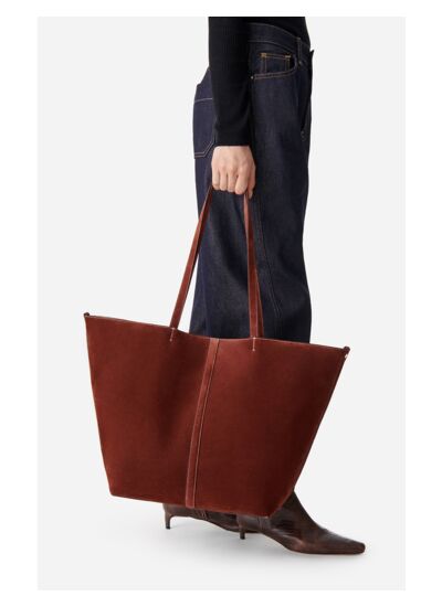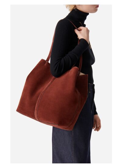 Le nouveau cabas en cuir qui reprend l',esprit du sac Daily, avec un cuir de vachette suède, ses coutures apparentes et son travail de plissage du cuir. Sa construction va à l',essentiel pour créer une silhouette épurée, que l',on peut fermer à l',aide d',un mousqueton doré, et que l',on déplie pour dévoiler un volume généreux. Ses anses rallongées ont été pensées pour que vous puissiez le glisser à l',épaule même avec votre manteau. Son petit plus ? Son aimant pour y ranger vos affaires les plus précieuses en toute sécurité.