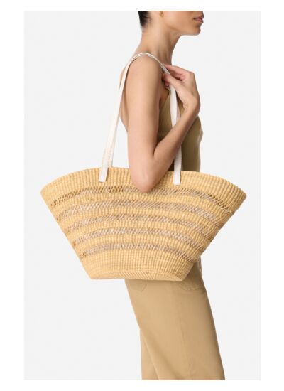 Imaginé dans nos studios, conçu et monté artisanalement au Ghana, peaufiné en Italie pour ses détails en cuir, le nouveau panier REED est une parfaite alliance de style, de fonctionnalité, de savoir-faire et d'éco-responsabilité. Notre nouveau panier REED (roseau en anglais) est confectionné dans une fibre naturelle que l'on appelle "herbe à éléphant". Afin de trouver le juste équilibre entre respect des traditions et élégance intemporelle, nous sommes allés au Ghana pour travailler avec une coopérative de femmes maîtrisant à perfection l'art du tressage, faisant ressortir toute la noblesse de cette fibre pourtant si simple. Un panier à l'élégance effortless, parfait pour y ranger vos essentiels de l'été : le grand format sera votre allié idéal pour une escapade estivale.