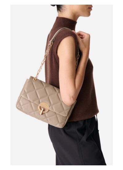 Le sac Moon, emblématique de la maison Vanessa Bruno fait partie de ces iconiques que l',on ne présente plus. Chic et versatile, ce modèle à la ligne délicate s',habille ici d',un cuir craquelé matelassé et est une fois de plus doté de son iconique fermoir rond. Rehaussé d',une bandoulière en chaîne et cuir, ce sac à main cool et élégant vous suivra dans tous vos déplacements.