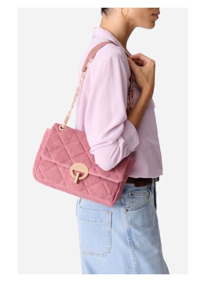 Le sac Moon, emblématique de la maison Vanessa Bruno fait partie de ces iconiques que l',on ne présente plus. Chic et versatile, ce modèle à la ligne délicate s',habille ici d',un lin matelassé et est une fois de plus doté de son iconique fermoir rond. Rehaussé d',une bandoulière en chaîne et cuir, ce sac à main cool et élégant vous suivra dans tous vos déplacements.