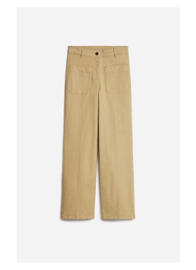 Ce jean en coton est une pièce à la fois tendance et décontractée. Sa coupe droite cropped et sa taille haute offrent un confort optimal tout en allongeant la silhouette. Les grandes poches plaquées à l',avant ajoutent une touche utilitaire et moderne à ce modèle. Polyvalent et facile à assortir, il est parfait pour un look casual avec une blouse fluide ou un t-shirt, ou pour une allure plus habillée avec des sandales à talons. Un indispensable pour un style chic et naturel au quotidien.