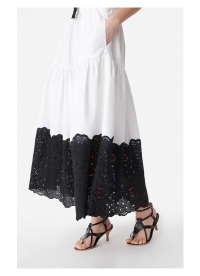 Grand volant sur le bas de la jupe en broderie anglaise noire