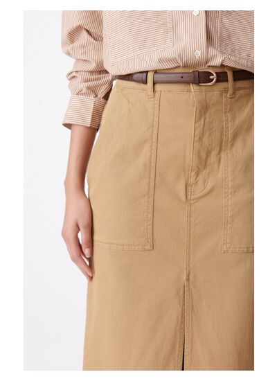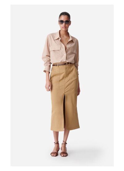 La jupe Draga revisite le pantalon cargo en version jupe pour une allure plus féminine. Elle conserve les éléments clés d'un pantalon cargo, tels que sa robustesse, ses grandes poches pratiques, et sa durabilité, tout en ajoutant une touche d'élégance avec sa fente sur le devant, sa coupe ajustée à la taille et sa toile de coton au tombé droit. Portez-la avec un pull et des mocassins pour un look casual chic, ou avec une paire de baskets pour un style plus streetwear.