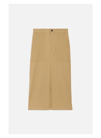 Jupe mi-longue en coton mélangé.