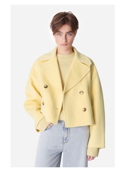 Confectionné dans une laine double-face jaune clair ultra tendance, ce manteau est idéal pour habiller vos tenues au quotidien. Son col à revers large et ses manches longues arrondies apportent du caractère, tandis que les épaulettes boutonnées structurent la silhouette. La fermeture à double boutonnage à l',avant ajoute une touche classique, et les poches discrètes maintiennent l',esthétique épurée. Parfait pour la mi-saison, il apporte une touche de sophistication tout en assurant un confort sans égal.
