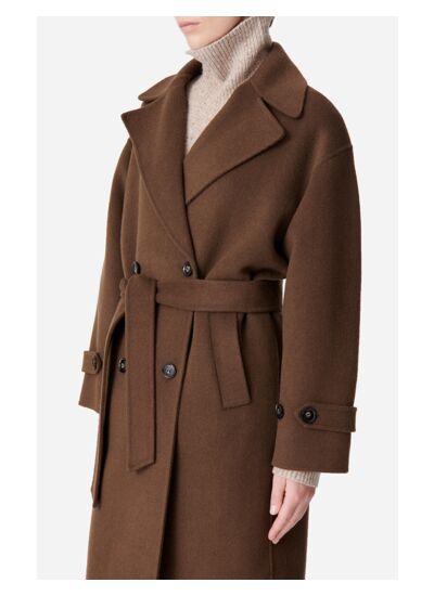 Le manteau Cecil, un essentiel revisité par la maison, se décline dans une teinte marron kaki qui apporte une touche de couleur subtile pour la saison. Doté d'une ceinture à la taille, il peut être porté de manière ample ou resserrée afin de s'adapter à votre silhouette et à vos humeurs. Son grand col à revers apporte une touche sophistiquée et chic. Confectionné en laine double face pour une sophistication intemporelle, chic et durable. Sa coupe aux manches amplespermet de le porter facilement sur vos mailles.