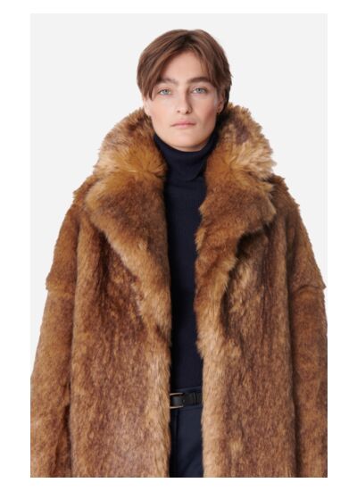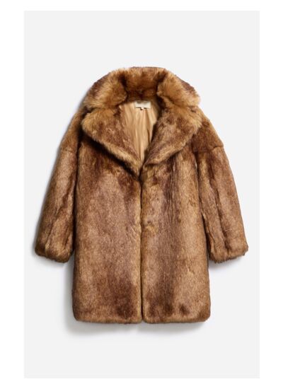 Pièce audacieuse, ce manteau en fausse fourrure brun-doré apporte luminosité et douceur à vos looks de mi-saison. Son volume généreux et ses manches raglan créent un style bohème chic inspiré des années 70. À porter avec une robe pour un effet glamour ou avec une tenue plus décontractée pour un look quotidien élégant.