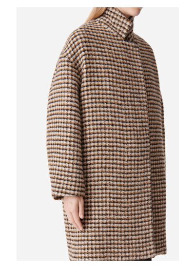 Le manteau Maguelone réinvente la coupe oversized avec des détails raffinés. Confectionné en laine et alpaga, dans un tissu doux inspiré du tweed, il se distingue par son motif pied-de-poule aux tons camel, noir et blanc. Alliant un style rétro et preppy à une silhouette oversized aux volumes généreux, ce manteau offre une touche de modernité. Les finitions soignées, telles que le col montant enveloppant, les pattes de boutonnage cachées et les manches légèrement bouffantes, ajoutent une élégance sophistiquée. Il vous enveloppe chaleureusement tout en permettant de superposer plusieurs couches en dessous, pour un confort optimal.