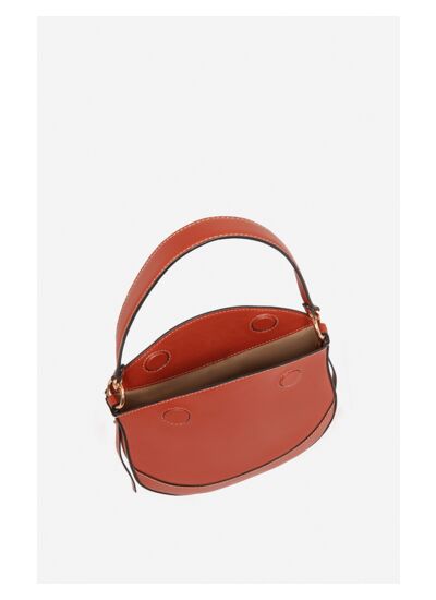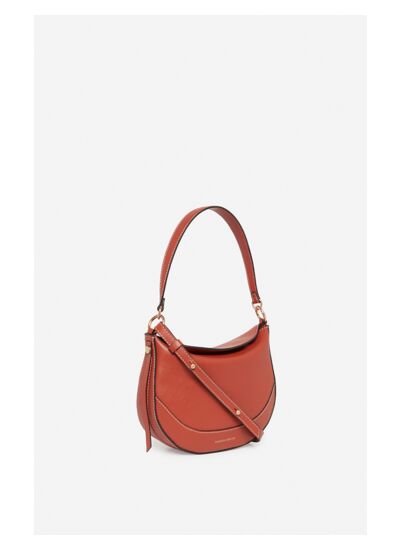 Mini sac demi-lune en cuir lisse. Porté main, épaule ou crossbody.