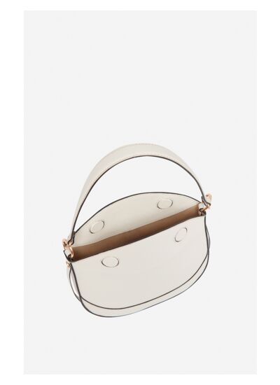 Mini sac demi-lune en cuir lisse. Porté main, épaule ou crossbody.
