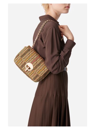 Le sac Moon, emblématique de la maison Vanessa Bruno fait partie de ces iconiques que l'on ne présente plus. Chic et versatile, ce modèle à la ligne délicate s'habille ici d'un tissage de cotton et de laine mélangée inspiré de la technique du tweed, et est une fois de plus doté de son iconique fermoir rond. Son colori automnal est contrasté avec des touches de couleurs plus "pop" pour jouer des contrastes de la mi-saison. Rehaussé d'une bandoulière en chaîne et cuir, ce sac à main cool et élégant vous suivra dans tous vos déplacements.