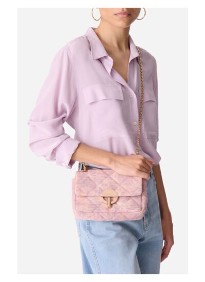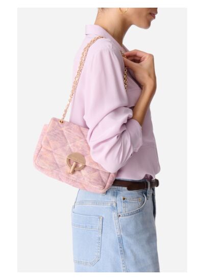 Ce sac Moon de taille moyenne est une pièce élégante et raffinée, confectionnée en coton et jute, ce qui lui confère une texture naturelle et authentique, tout en restant sophistiquée. Son design matelassé, avec un motif en losanges délicatement tracé, s'harmonise parfaitement avec ses teintes pastel subtilement nuancées de rose, beige et doré. Il est orné d'un fermoir circulaire en métal doré, gravé du nom de la marque, qui s'ouvre avec une élégante simplicité. Sa bandoulière en chaîne dorée, ajustable, permet de le porter à l'épaule ou en travers du corps, ajoutant une touche luxueuse et pratique. Parfait pour sublimer une tenue de jour comme de soirée, le sac Moon allie charme intemporel et modernité.