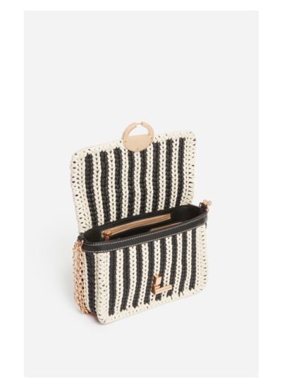 Grand sac matelassé Moon en cuir tressé noir et blanc.