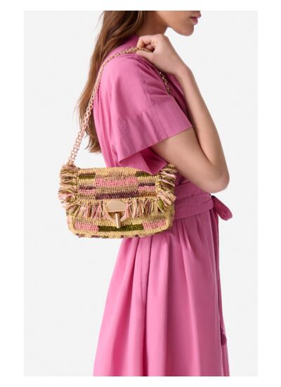 Comme chaque année, nos pièces fétiches passent à l'heure d'été avec le Raphia. Nos icônes se réinventent pour proposer une série de nouveaux tressages, volumes et coloris. Chic et versatile, ce modèle à la ligne délicate s'habille ici de raphia tissé en demi bride et de franges, et est une fois de plus doté de son iconique fermoir rond. Rehaussé d'une bandoulière en chaîne, ce sac à main cool et élégant vous suivra dans tous vos déplacements. L'intérieur, parfaitement agencé, offre un compartiment principal et une poche plaquée pour organiser vos essentiels avec style. Avec son allure intemporelle et ses détails fonctionnels, il s'impose comme un accessoire incontournable pour toutes vos tenues. Cet accessoire en raphia a été tressé à la main dans notre atelier de Madagascar. Chaque modèle est unique et peut présenter d'éventuelles irrégularités dues au caractère naturel de la fibre et à la fabrication artisanale du produit.