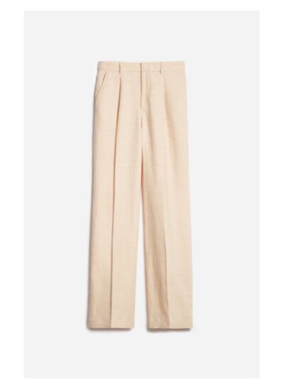 Pantalon taille haute en coton et lin