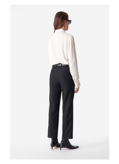 Comment porter le pantalon Dandy pour différentes occasions ? Sa coupe droite et ses plis subtils permettent de le porter aussi bien au bureau qu’en sortie. Associez-le à une chemise simple pour un look casual chic ou à une veste de tailleur noire pour une allure professionnelle et sophistiquée.