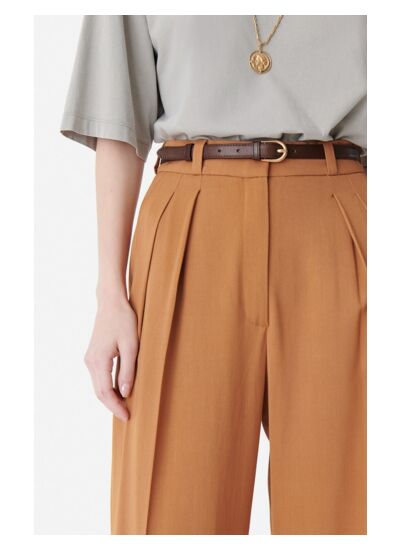 Le pantalon à pinces fluide et léger, confectionné dans un coton mélangé. Taillé et ample, il vous donne une allure chic et décontractée à la fois selon votre humeur. Portez-le avec le blazer Virginia pour un look assorti.