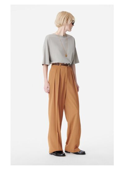 Pantalon de tailleur large à pinces en viscose mélangée.
