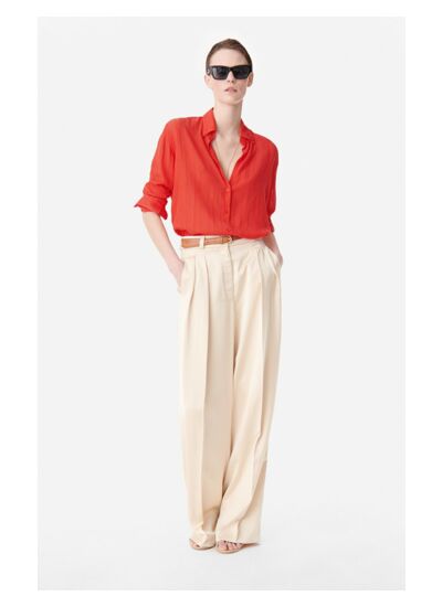 Le pantalon à pinces fluide et léger, confectionné dans un coton mélangé. Taillé et ample, il vous donne une allure chic et décontractée à la fois selon votre humeur. Portez-le avec le blazer Virginia pour un look assorti.