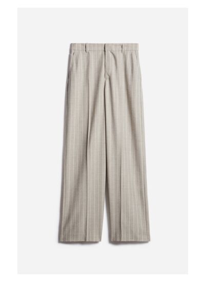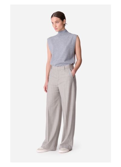 Ce pantalon rayé se caractérise par sa coupe ample et fluide, qui allonge la silhouette avec élégance. Confectionné dans une laine mélangée fluide et confortable, il présente une taille mi-haute dotée de passants pour ceinture et une fermeture classique avec zip et agrafe. Les plis marqués sur la longueur ajoutent une touche de structure et de sophistication. Idéal pour une allure chic et contemporaine, ce pantalon peut se porter avec une chemise rentrée pour un look professionnel ou avec un haut décontracté pour une tenue plus casual. Une pièce polyvalente pour toutes les occasions. Pour un look coordonné, portez-le avec le blazer sans manches Christen