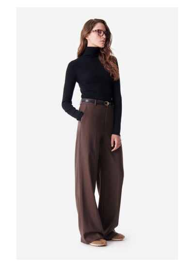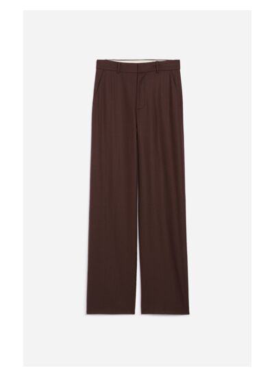 Le pantalon de tailleur Dulce, en marron chocolat, apporte une touche réconfortante et élégante à votre garde-robe. Confectionné en laine, ce pantalon large à taille haute présente des plis à l'avant, dessinant une silhouette structurée tout en offrant un tombé fluide. Portez-le, pour une tenue décontractée quotidienne, avec un t-shirt et une paire de baskets, ou associez-le à une blouse et une paire de mocassins pour un look de bureau.