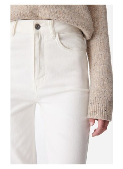 Ce jean blanc se marie parfaitement avec des chaussures formelles pour un look sophistiqué ou avec des baskets pour un style casual. Il joue sur le contraste entre féminin et masculin, offrant une grande polyvalence.