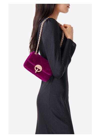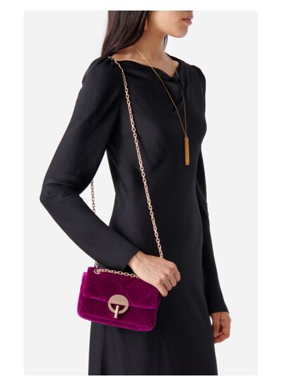 Le Petit sac Moon est un essentiel pour être chic au quotidien, avec sa bandoulière en chaîne et son fermoir doré rond. Emblématique de la maison, ce sac est revisité de saison en saison, ici il est décliné en velours matelassé pour une allure chic et intemporelle. Son format extra-small range le strict nécessaire, un rouge à lèvre, votre téléphone, un miroir...