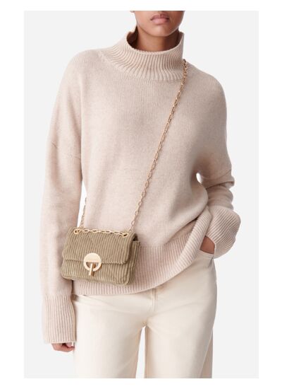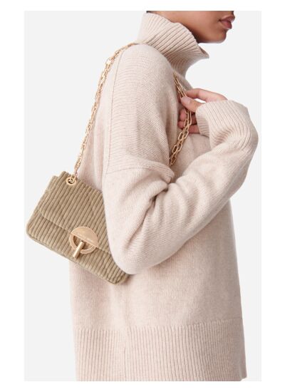 Le sac Moon, emblème de la maison Vanessa Bruno, est un incontournable. Chic et polyvalent, il se distingue par sa ligne délicate et s'habille ici d'un velours côtelé doux et matelassé. Rehaussé d'une bandoulière en chaîne dorée, ce sac à main allie élégance et modernité, idéal pour vous accompagner au quotidien comme lors de vos sorties.