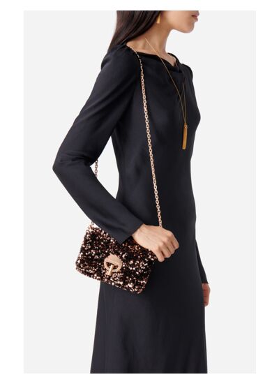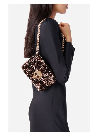 Sequins aux reflets marron-glacésBandoulière ajustable en chaîne dorée