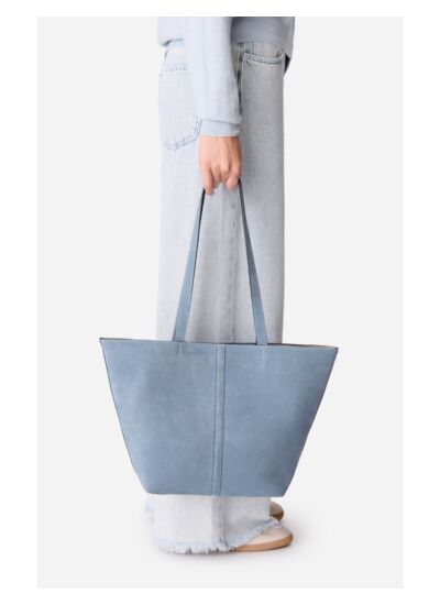 Ce nouveau Cabas en cuir, reprend l',esprit de notre sac Daily, avec un cuir de vachette lisse, ses coutures apparentes et son travail de plissage du cuir. Sa construction va à l',essentiel pour créer une silhouette épurée, que l',on peut fermer à l',aide d',un mousqueton doré, et que l',on déplie pour dévoiler un format Cabas. Ses anses rallongées ont été pensées pour que vous puissiez le porter à l',épaule, même avec votre manteau. Son petit plus ? Son aimant pour y ranger vos affaires les plus précieuses en toute sécurité.