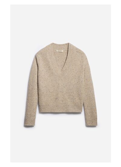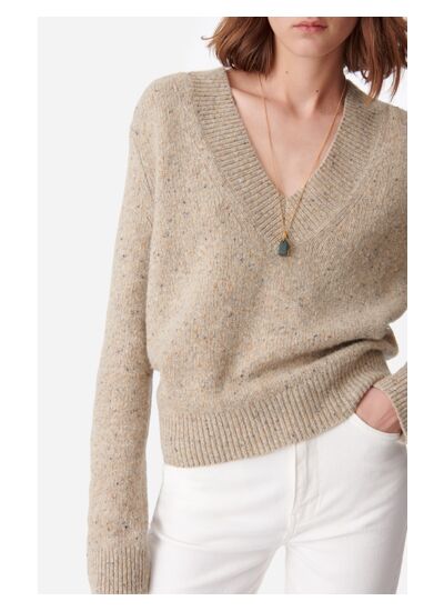 Damita est le pull féminin et élégant à porter au quotidien. Confectionné en laine mérinos et alpaga souple et moelleuse, il se distingue par son décolleté en V large et plongeant, sa coupe ajustée et minimale. Raffiné, ce pull possède une ligne ajustée et épurée, avec des détails subtils qui font tout son charme, tel que son bord-côte large au niveau du col et les deux rivets dorés dans le dos.