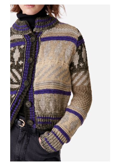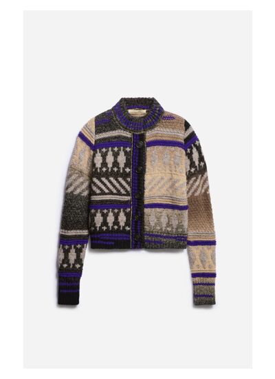 Sa coupe droite et son col montant en bord-côte s’adaptent parfaitement à une silhouette moderne. Associez-le à une mini jupe et des mocassins pour un look élégant et tendance qui met en valeur ses imprimés Fair Isle revisités.
