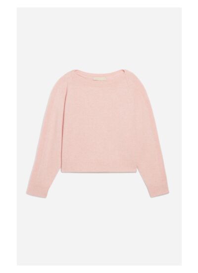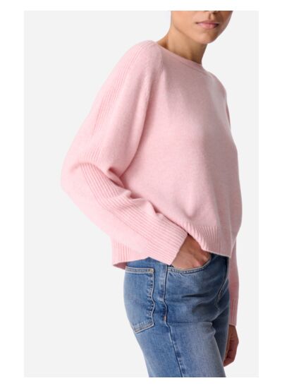 Le pull présente une coupe ample avec un col large et des manches raglan, assurant une silhouette fluide et un tombé souple qui convient à toutes les morphologies tout en apportant une touche moderne.