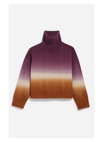 Le pull cropped Dora présente un magnifique dégradé dans des tons chauds, évoquant les nuances douces d'un coucher de soleil. Doté d'un col roulé et de manches longues légèrement tombantes, ce pull offre une coupe oversized et cropped. Égayez votre garde-robe hivernale avec ce modèle parfait pour réchauffer vos looks décontractés.