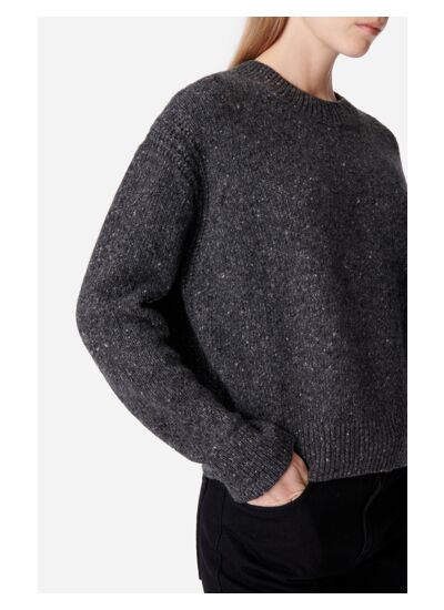 Le pull Duena en laine et alpaga vous séduira par sa douceur incomparable. Sa coupe oversize et ses manches extra longues ajoutent une touche moderne et décontractée, tandis que le col rond classique assure un look intemporel. Cette pièce joue la carte du minimalisme épuré avec de subtils détails de finitions en côtes, qui donne de la texture et une définition, sur les côtés et les épaules. Il se porte aussi bien avec un jean pour un style casual qu'avec une jupe pour une allure plus sophistiquée.