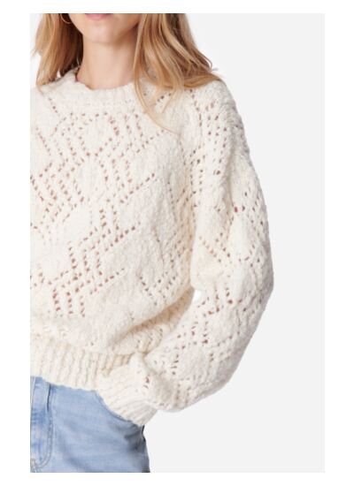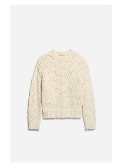 Ce pull ajouré en alpaga, laine et polyamide ajoute une touche de féminité avec ses motifs délicats. Le jeu de transparence apporte de la texture, le rendant parfait pour des looks chics ou décontractés. Versatile, il s'adapte à toutes les occasions, que ce soit pour une tenue de bureau ou un look plus casual.